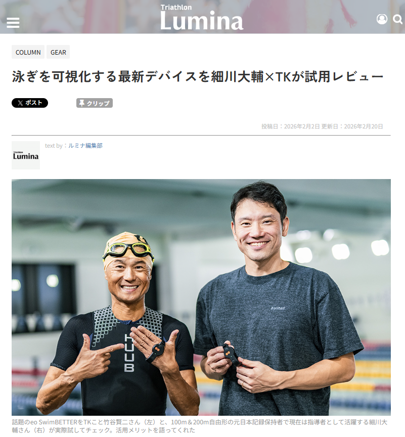 トライアスロン雑誌「Lumina」から、eo SwimBETTERのレビュー記事と動画が公開されました。